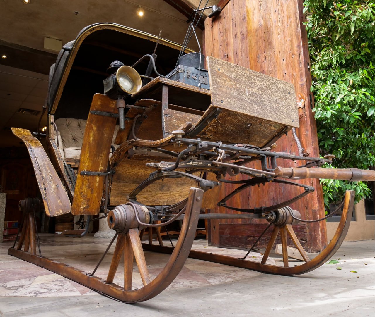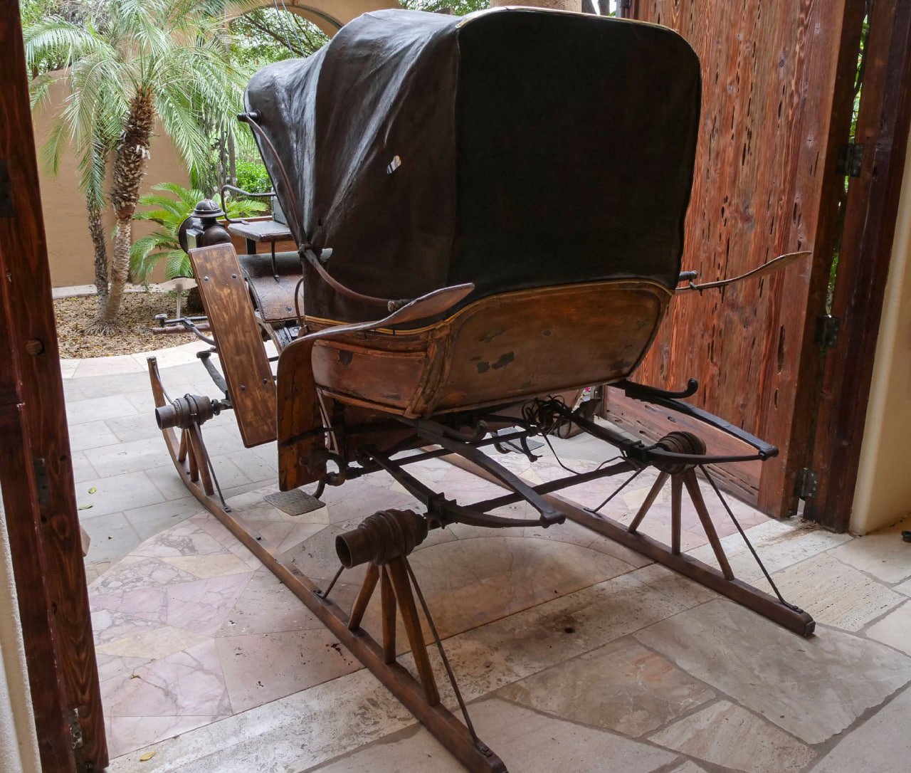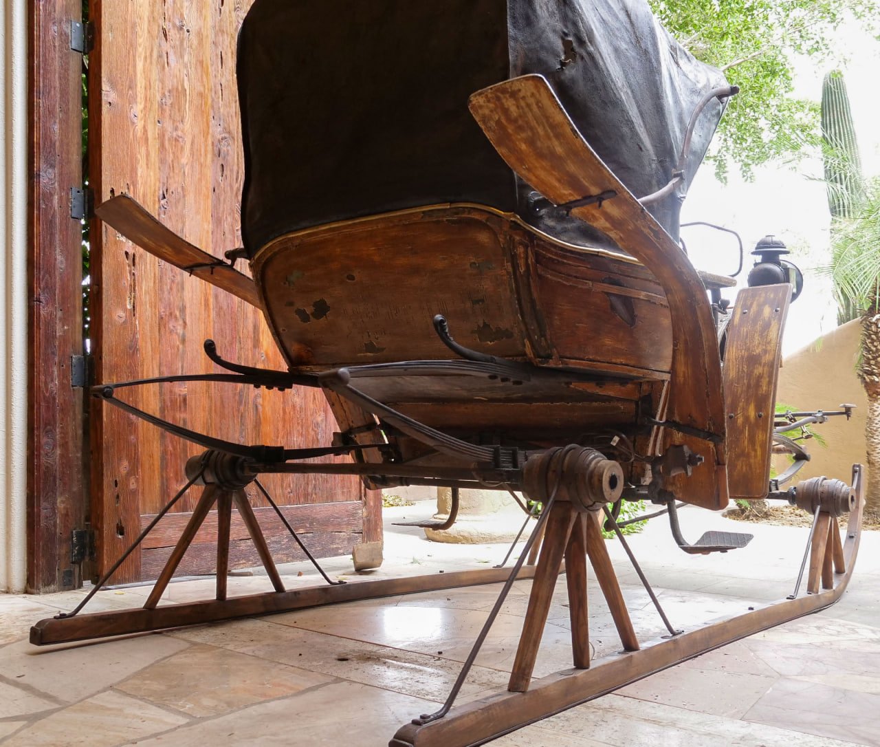 This rare calash hand built in Germany in 1840 is one of a kind. It is a original one of a kind because it was built to someone’s exact specifications fitted with sleigh runners for snow as well as wheels (we are told there is no other exactly like this one anywhere in the world).