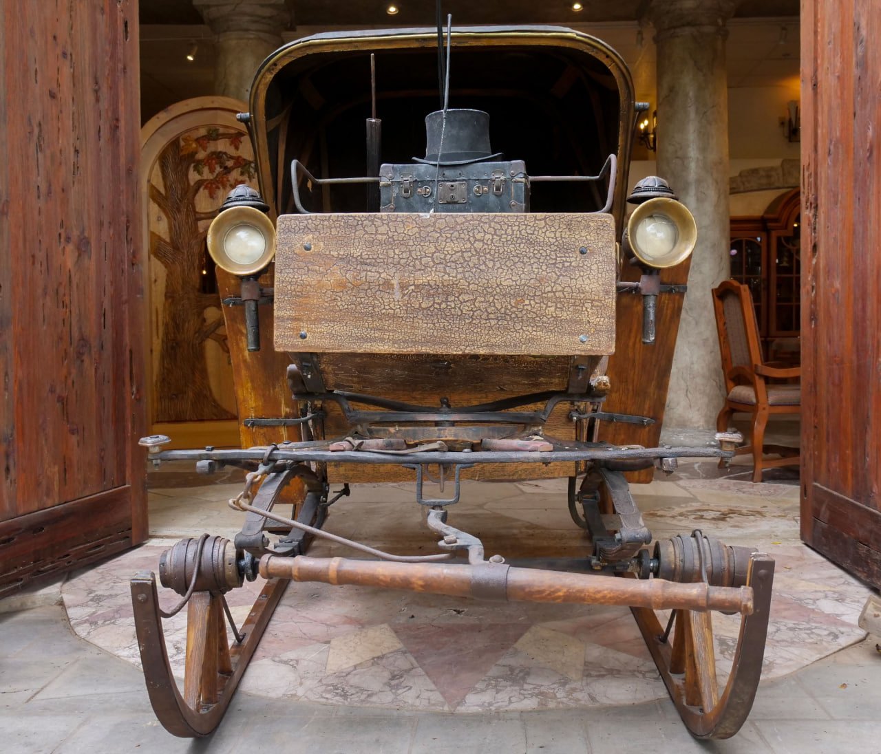 At MancaveArtCollectibles.com, we do not do “Made For TV” restorations. We have been in the business of preserving historic artifacts for over a century, and can restore your antique furniture, vintage gas pumps and vending machines, musical instruments, classic cars, or just about any item from history that you want to have brought back to its original glory, just as that item would have shipped “brand new” from the original manufacture. As can be seen on our website, we have restored hundreds historic items; including vintage visible gas pumps, old Coca-Cola vending machines, antique vehicles, and historic church organs; however, once in a while, we get in a piece of history that is truly extraordinary, and this 19th Century Calash Buggy, originally built for German royalty, is just such an item.