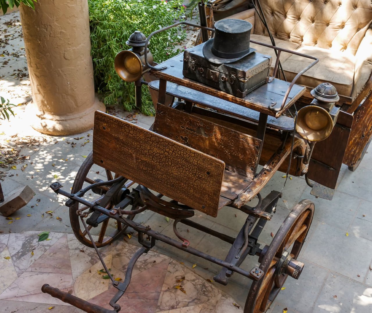 If This Calash Is To Be Road Worthy Again And Authentic – Every part necessary must be hand made in the same hand as it was made in in 1840. Each piece of broken wood would have to be hand bent or shaped by the hands of a master wood worker. The pitch coated leather top and horse hair filled tuck button upholstery was made by a master of leather work and hand stitched fabrics in the 1840s. In the 1840s – and today – there were no going to the store to get the parts you need to create such a piece. Each piece would have to be made by hand from scratch. This carriage was built by German master craftsman of the 19th century to stand the test of time.
