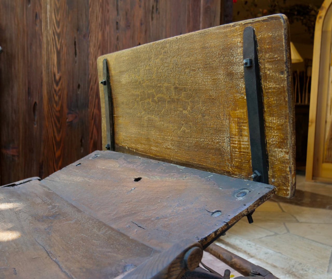 Photos As Shown Above: The condition of our 168 year old re-build project arriving at our dock – and the finished restoration with original various natural wear and tear patina.