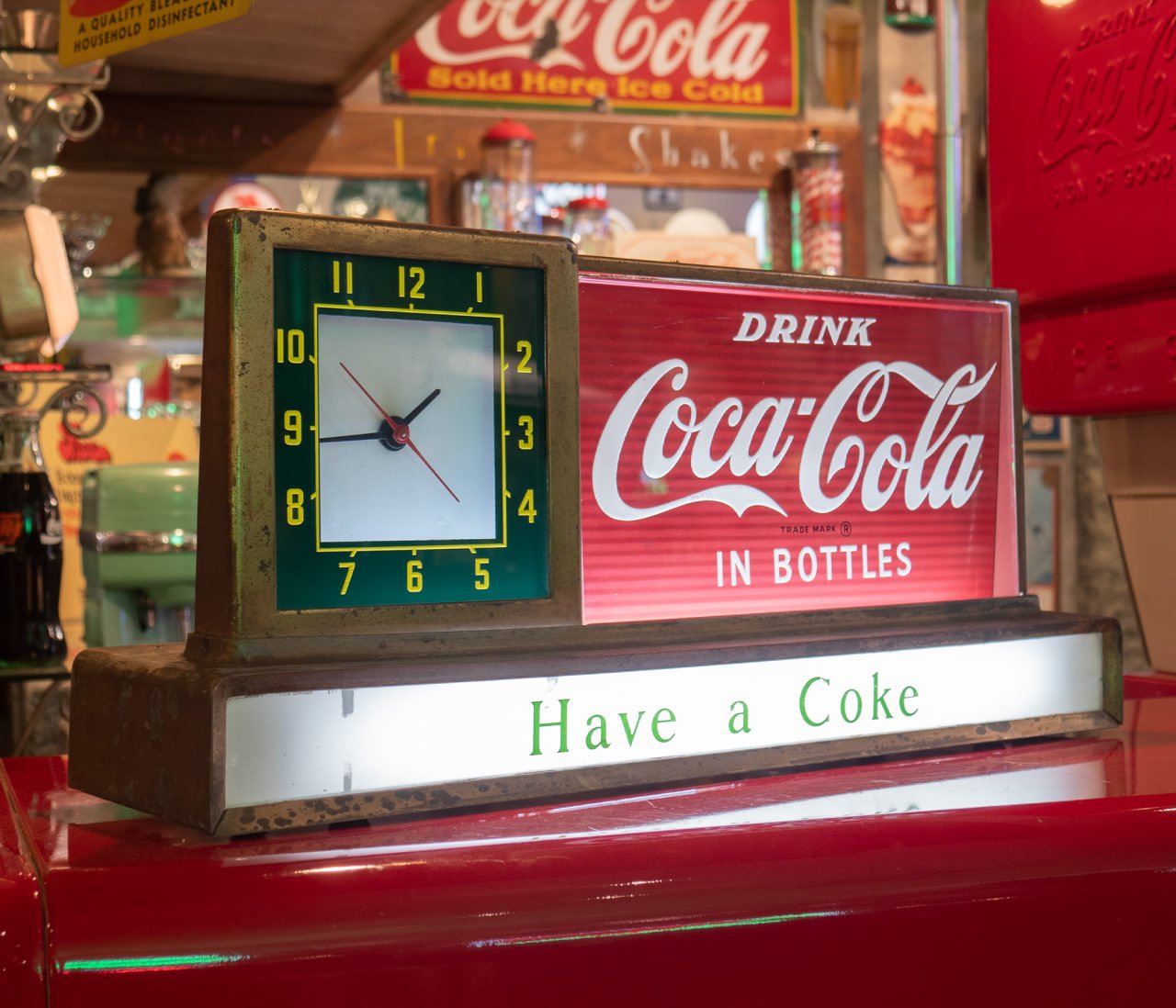 Coca-Cola Counter Clock: Original 1950’s Vintage Lighted Sign