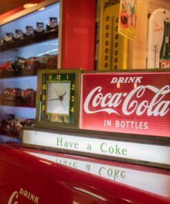 Like all of our original collectible signs, this Coca-Cola counter clock is sold in original unrestored condition, as pictured. We do not restore old advertisements because we believe that every ding, dent, scratch, and blemish is part of the history of the item. This clock is in working condition, with working light, and is in very clean condition overall for a sign of its age. We sell rare, collectible items from dozens of soft drink companies, including not only Coca-Cola, but also Dr. Pepper, Pepsi, 7 Up, Royal Crown Cola, Nesbitt’s, and many more. Like all of our vintage collectible advertisements, this Coca-Cola counter clock is an original, investment quality item. We are a one stop shop when it comes to outfitting your man cave or game room. We can can outfit an entire 1950’s style soda shop for you, or help you find that one special item that has been missing from your collection. We are a one stop shop for vintage soda collectibles, in addition to signs, and also have fully restored original vending machines. These machines are restored to working, museum quality condition and include original, period correct signage, logos, and paint schemes. Our vending machine restorations are the best in the business because nobody has been doing it longer, or pays as much attention to detail.