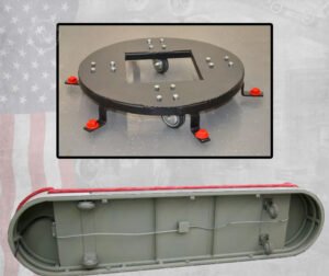 Finally, a convenient way to display and transport your heavy collectibles. This example includes 25 Foot industrial duty cord with plug wired and 4 duplex electrical outlets. Vintage gas pump display carts can be custom designed to any size, and like all of our products are built custom made to order. They can also be hand finished in any color to match you collectibles or the color scheme of your man cave. The vintage gas pump display carts pictured feature a 1930’s-50’s era Texaco color theme. They are custom finished to appear as worn and aged concrete colored Texaco red and grease stained in a battleship gray.