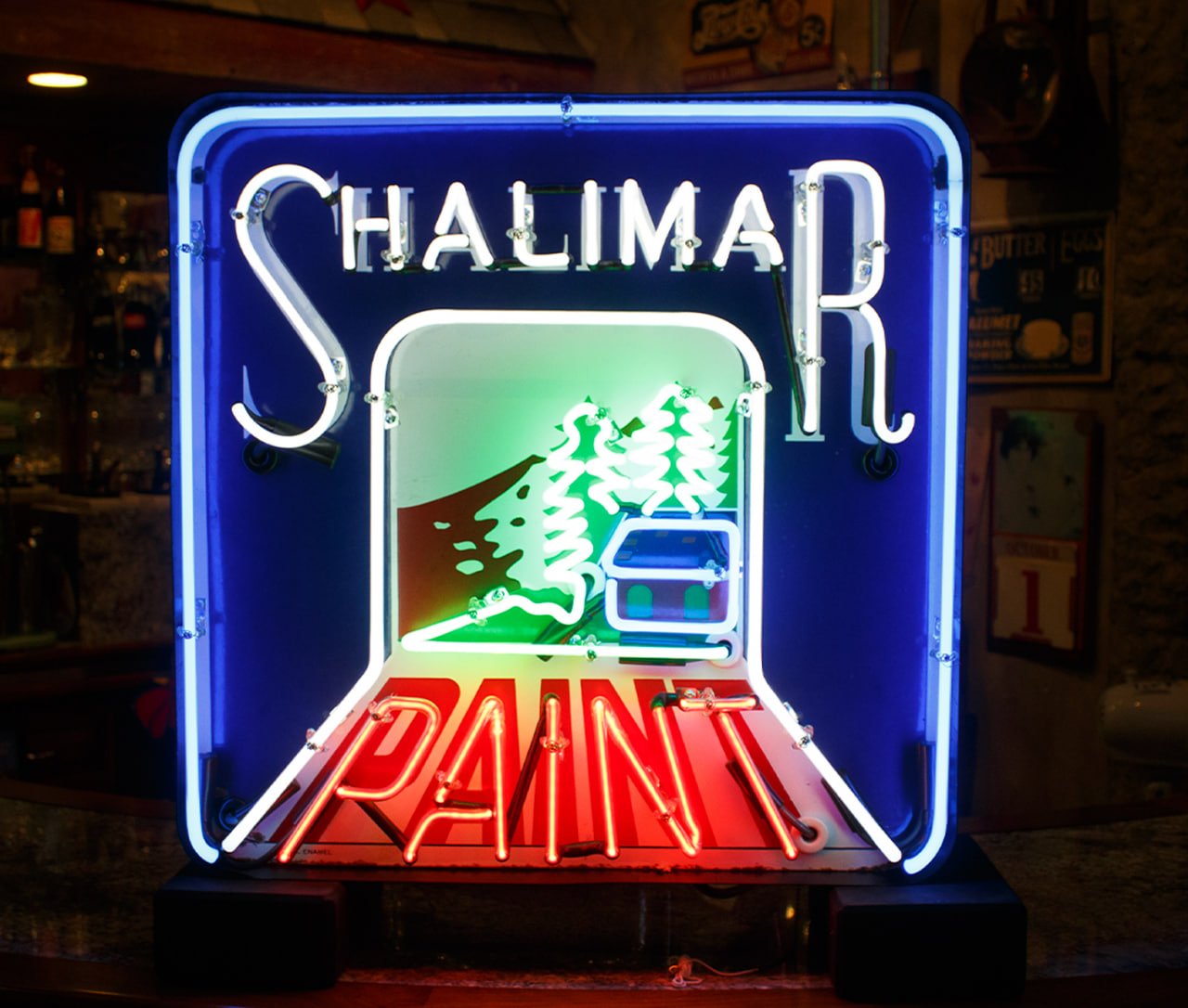 Smaller paint brands like Shalimar are increasingly rare, especially with original porcelain faces intact. These signs were designed for storefronts and hardware stores to advertise Shalimar’s premium paint line.