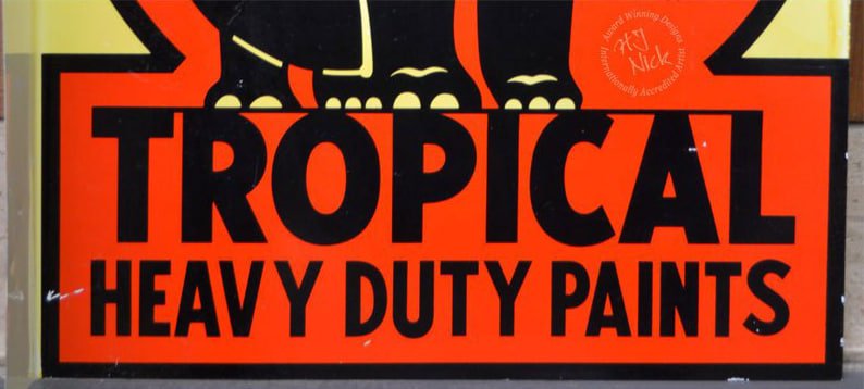 Tropical Heavy Duty Paints Sign: Original Vintage Double Sided Flange