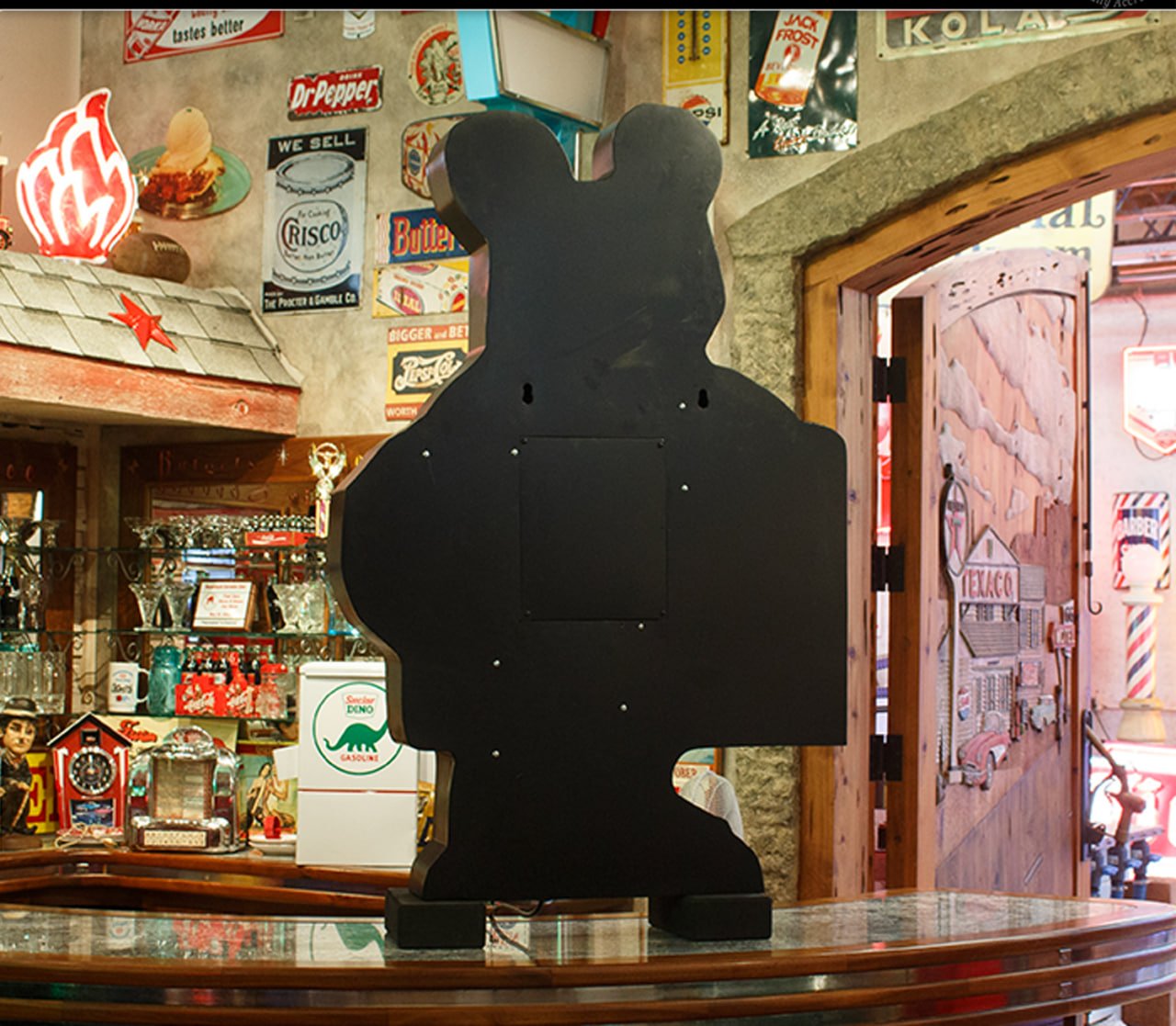 Shaped like a cheerful bear holding a service placard, these neon signs lit up service stations, garages, and alignment shops across the U.S. from the 1930s through the 1960s. Their bold colors and cartoonish charm not only advertised services but also made businesses instantly recognizable to passing motorists.